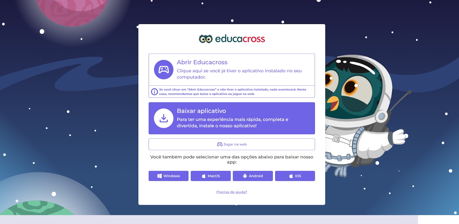 A Educacross é uma plataforma de gamificação de Língua Portuguesa e Matemática que proporciona experiências de aprendizagem imersivas e personalizadas para o desenvolvimento de habilidades relacionadas à Língua Portuguesa e Matemática.