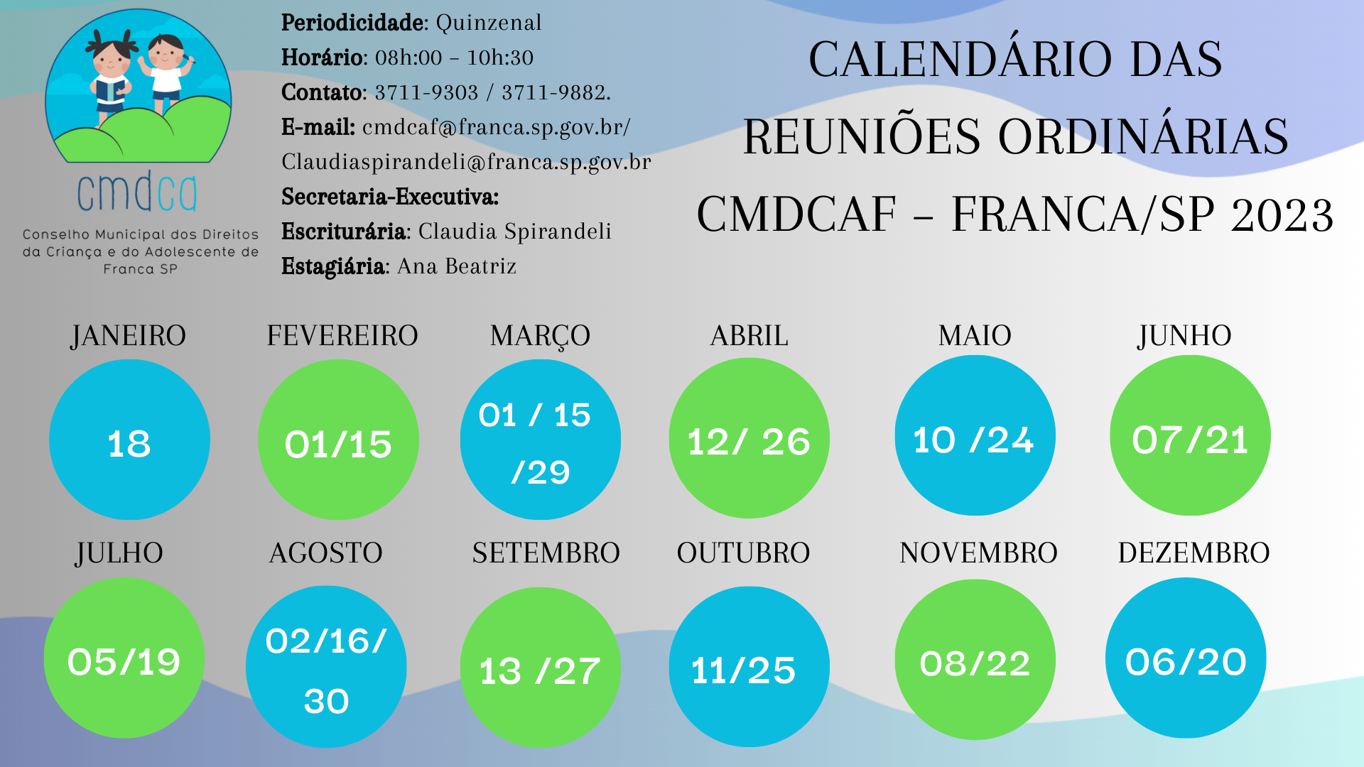 CALENDÁRIO DAS REUNIÕES ORDINÁRIAS 2023